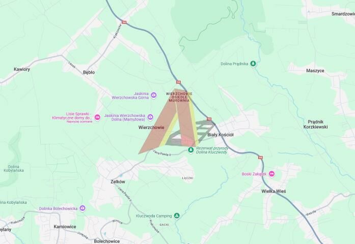W pobliżu przystanek autobusowy , sklepu Lewiatan . Dolina Kluczwody , Jaskinia Wierzchowska.